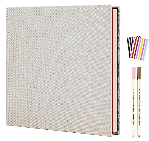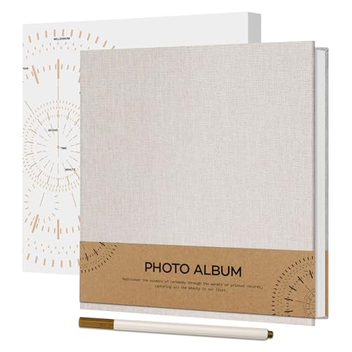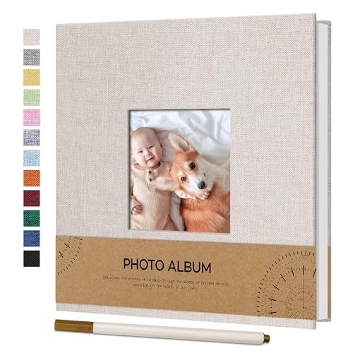 Boic Självhäftande fotoalbum 60 svarta sidor, gör-det-själv fotoalbum linne, påfyllningsbar, klippbok, fotobok, gästbok, födelsedag, årsdag, present för kvinnor och män (beige)