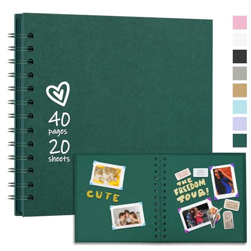 Vienrose Självhäftande fotoalbum 18 x 18 cm, scrapbook, gör-det-själv-inklistring för fotoalbum med 40 sidor, inbundet kraftpapper, spiralalbum som present till bröllop, födelsedag, årsdag, mörkgrönt