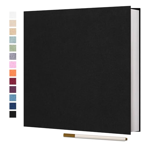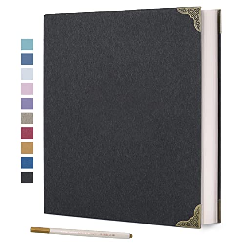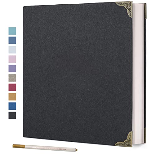 Vienrose Fotoalbum, självhäftande, klippbok för foton i olika format, gör-det-själv-scrapbook med en metallpenna (33 x 32 cm, 60 sidor, svart)