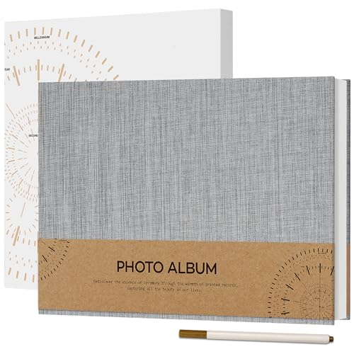 AIOR Självhäftande fotoalbum inklistring och för egendesign, stora linne, fotoalbum, retro, klippbok, 60 vita sidor, födelsedag, årsdag, gåva, 33 x 32 cm (grå)