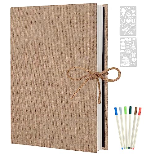 Vienrose Självhäftande fotoalbum för foton på 10 x 15 cm, liten klippbok i linne, 60 vita sidor, gör-det-själv-album med metallpenna, 21,5 x 30 cm, svart