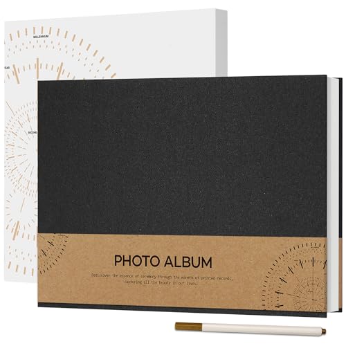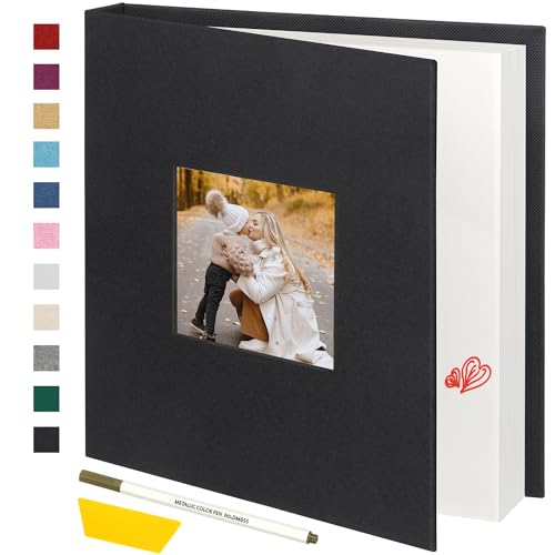 Miaikoe Fotoalbum självhäftande scrapbook-album för 4 x 6 5 x 7 8 x 10 bilder, 60 sidor linneomslagsalbum med visningsfönster gör-det-själv-bok med en metallpenna och skrapa (svart)