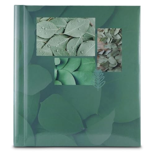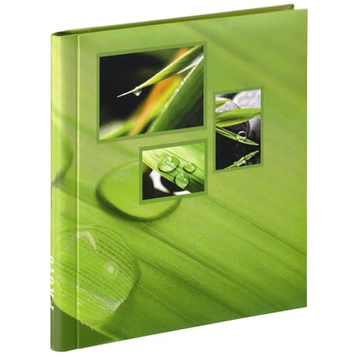 Hama Självhäftande fotoalbum 28 x 31 cm "Singo II" (40 foton 10 x 15 cm, 20 vita självhäftande sidor, DIY-album för scrapbooking, presentidé, hårt omslag bladmönster) grönt