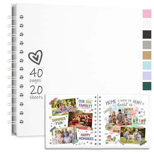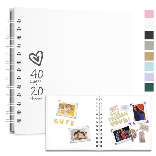 Vienrose Självhäftande fotoalbum 18 x 18 cm, scrapbook, gör-det-själv-inklistring för fotoalbum med 40 sidor, inbundet kraftpapper, spiralalbum som present till bröllop, födelsedag, årsdag, vit