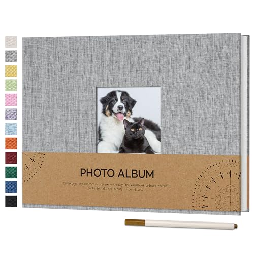 Vienrose Självhäftande fotoalbum med bildfönster för 4 x 6 foton, linneskydd gör-det-själv scrapbook-album 40 vita sidor för resefotobok med kulspetspenna, 21,5 x 30 cm, grå
