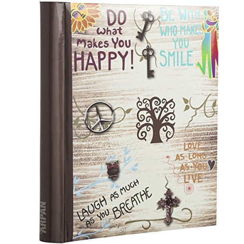 Arpan Fotoalbum, stort, självhäftande, motiv "Life Inspirational Slogans", 24,5 cm x 2,5 cm x 29 cm, krämfärgad