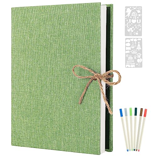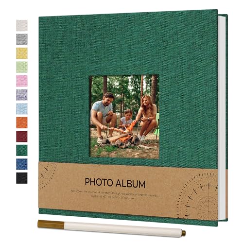 Vienrose Självhäftande fotoalbum med bildfönster för 4 x 6 foton, linneskydd gör-det-själv scrapbook-album 40 vita sidor för resor, fotobok med kulspetspenna, 21,5 x 30 cm, gräsgrön