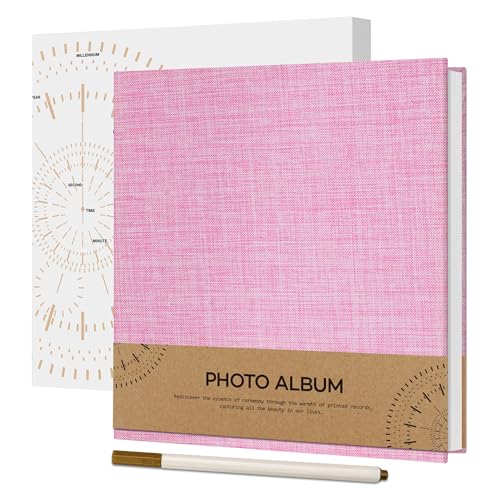 Vienrose självhäftande fotoalbum, album för att klistra och skriva i, linneomslag, scrapbook, present till baby, födelsedag, souvenirer, bröllop, årsdag, familjeminne, med en penna, 33 x 32 cm, 60