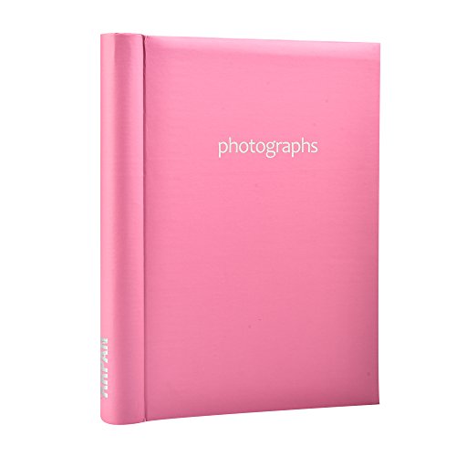 Vienrose Självhäftande fotoalbum för foton på 10 x 15 cm, liten klippbok i linne, 40 vita sidor, gör-det-själv-album med metallpenna, 17 x 18 cm, rosa