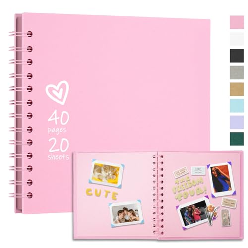 Vienrose Självhäftande fotoalbum 18 x 18 cm, scrapbook, gör-det-själv-inklistring för fotoalbum med 40 sidor, inbundet kraftpapper, spiralalbum som present till bröllop, födelsedag, årsdag, rosa