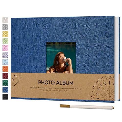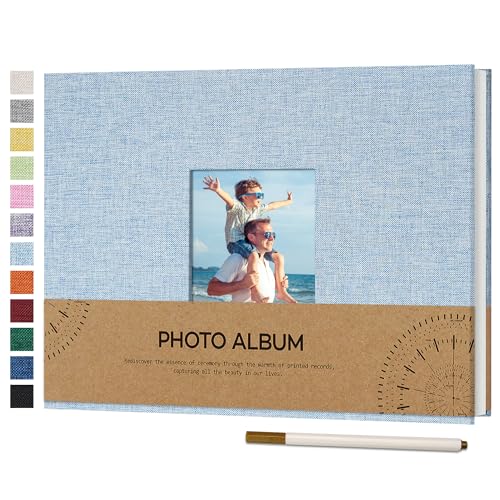 Vienrose Självhäftande fotoalbum med bildfönster för 4 x 6 foton, linneskydd gör-det-själv scrapbook-album 40 vita sidor för resor, fotobok med kulspetspenna, 21,5 x 30 cm, himmelsblå