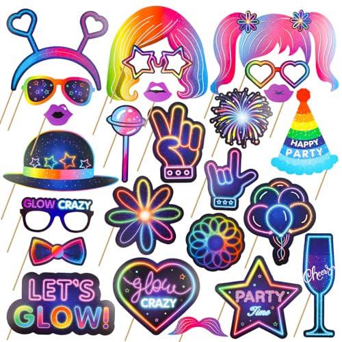 POPOYU 26 stycken Let's Glow Party fotorekvisita, neon uppblåsbar fotoram, disco fotobox tillbehör födelsedag, bildram neon för födelsedag, bal, disco party tillbehör foto ram set