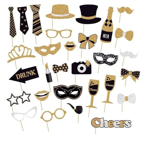 Voarge 30 stycken fotorekvisita, fotobox tillbehör, fest foto båt rekvisita dekoration, rolig festdekoration födelsedag, guld festtillbehör, för bröllop, halloween, jul, festdekoration