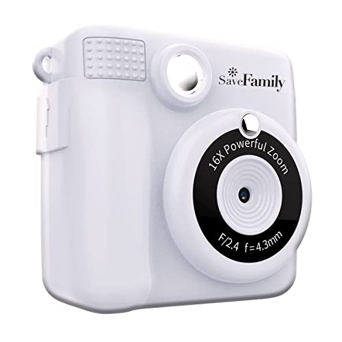 SaveFamily Print. Fotokamera för barn – Digital. Videor, Musik, Zoom, Flash och Roliga ramar. Utskrift + 400 Foton