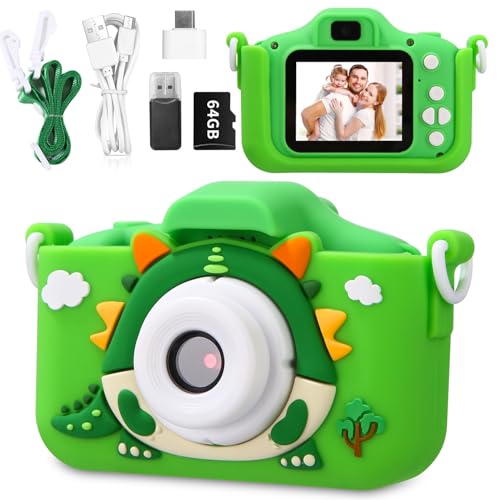 Adicop Barnkamera Digitalkamera 1080P 2.0 tums skärm Fotokamera Barnkamera med 64GB kort för 3-10 år Flickor/Pojkar Presentleksak Födelsedag Jul