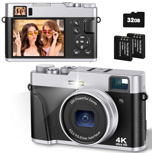 4K digitalkamera 48 MP autofokus kamera fotokamera med 32 GB kort, 16 x digitalzoom, kompakt digitalkamera med 2 batterier för nybörjare