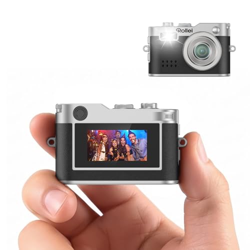 Rollei Minidigitalkamera vintage svart, 1080P FHD liten retro digitalkamera med 0,96 tums färgskärm 2 MP tumkamera kompakt fotokamera med blixt och inspelning, mini-digitalkamera liten