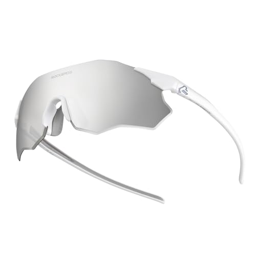 ROCKBROS Fotokromatiska cykelglasögon sportsolglasögon för män kvinnor cykling solglasögon UV400-skydd TR90 ram mode vindtäta glasögon vitt silver