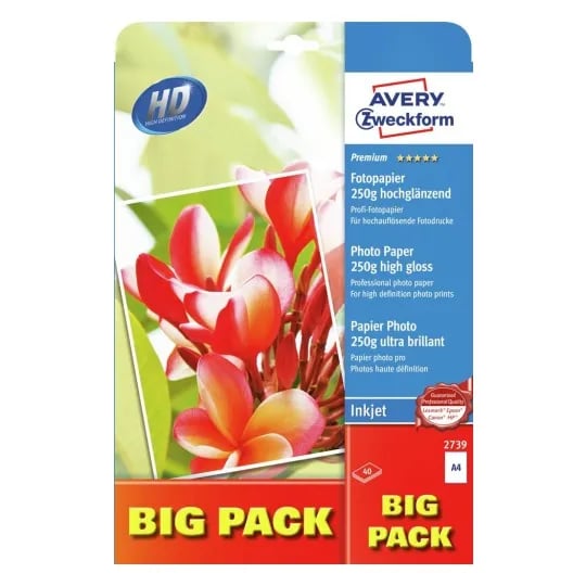 Fotopapper Avery Premium A4 250G Glossy T/Inkjet (40 Ark Per Förpackning)