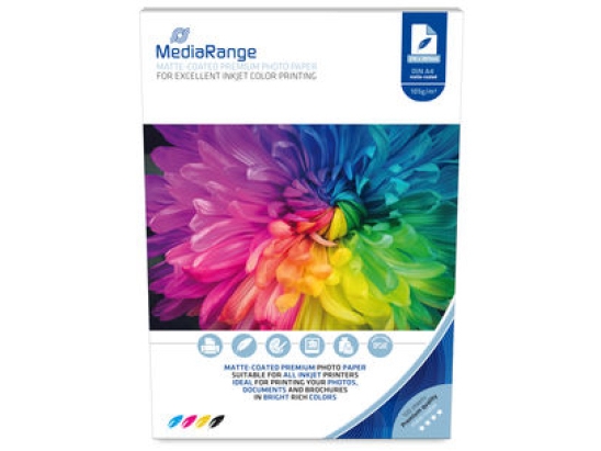 MediaRange 100 ark matt fotopapper för bläckstråleskrivare, 105 g, A4