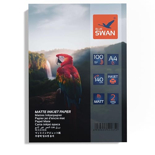 BLUE SWAN A4 Fotopapper matt 140 g/m² 100 ark – Dubbelsidigt matt beläggning, reflexfri, snabbtorkande & färgbriljant – för affischer, broschyrer, presentationer, foton