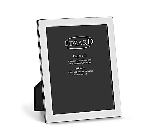 EDZARD Bildram Genua för foto 15 x 20 cm, ädel silverpläterad, missfärgningsskyddad, med sammetsbaksida, inkl. 2 hängare, fotoram för att ställa och hänga upp