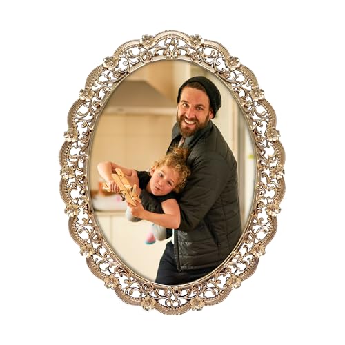 Gåva viktoriansk oval fotoram/15 x 20 cm | för vertikal visning på bordsskivor | perfekt för heminredning, bröllop, semester, examen eller andra milstolpar foton (guld)