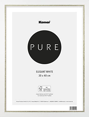 Komar bildram trä elegant vit 30 x 40 cm – med mycket transparent okrossbar plast/akrylglas – vit, guld – fotoram, väggram – BI-3040-EL-W