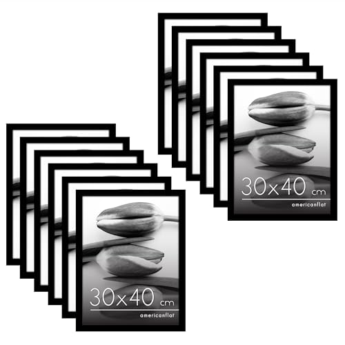 Americanflat 30x40 cm Fotoram med Polerad Plexiglas - Set om 12 - Signature Collection - Fotoramar med Konstruerat Trä - Galleria Vägg Ramar för Bord och Vägg Display - Svart