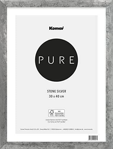 Komar Bildram trä sten silver 30 x 40 cm – med mycket transparent okrossbar plast/akrylglas – silver – fotoram, väggram – BI-3040-ST-S