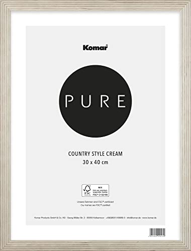 Komar bildram trä country Style Grey 30 x 40 cm – med mycket transparent okrossbar plast/akrylglas – vit – fotoram, väggram – BI-3040-CS-CR