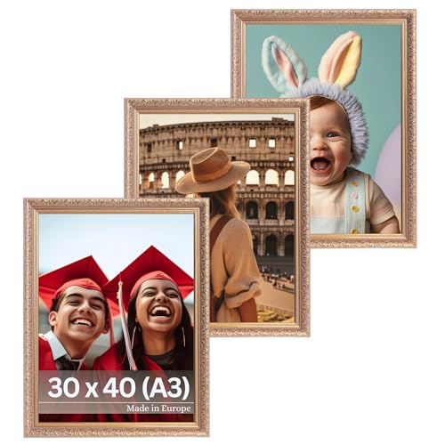 VictoR Vintage bildram "Rubens", set om 3 i 30 x 40 cm (A3) roséguld – list: 30 x 20 mm – äkta glas – fotoram barock – antik – bildram set A3 vintage