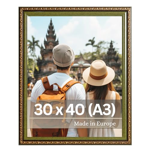 Victor Antique - Konstnärlig Fotoram "Chagall" i Brungrönt - 30x40 cm (A3) Dekorativ Fotoram Vintage - Lämplig för Certifikat - Fotoram Brun 30x40 - Fotoram Barock