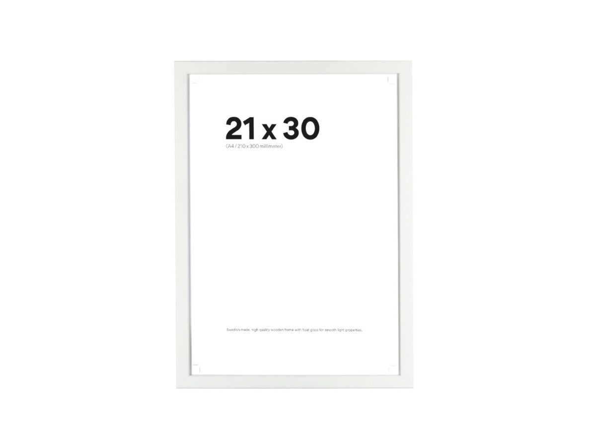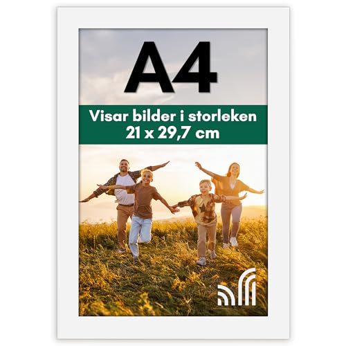 Americanflat Fotoram A4 – Av MDF och splittersäkert glas – För vägg eller bord – Passar motiv 21x29, 7 cm – Vit