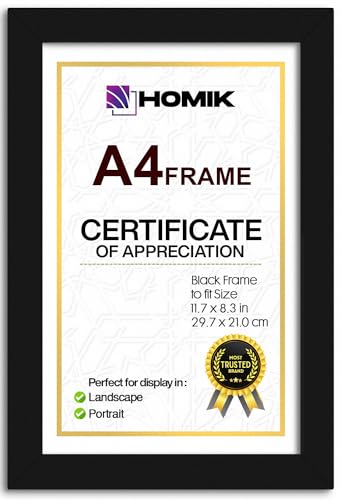 HOMIK A4-fotoram med akrylsäkerhetsglas, dekorativ bildram, perfekt för att ge bort och hänga på väggen