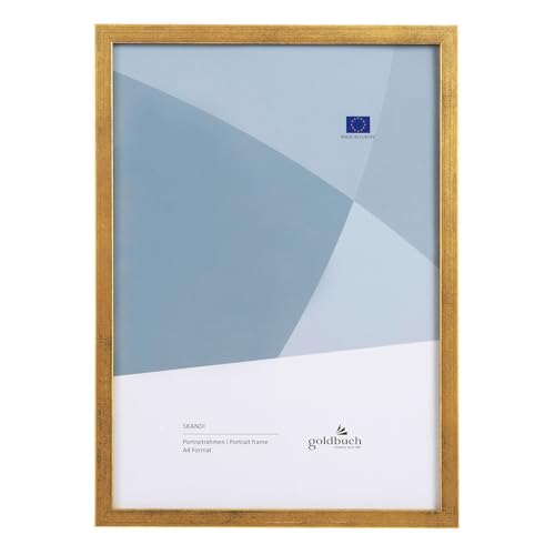 goldbuch Fotoram Skandi DIN A4, enkel ram av äkta trä, porträttram att ställa in, träram med väggfäste, fotoram, guld
