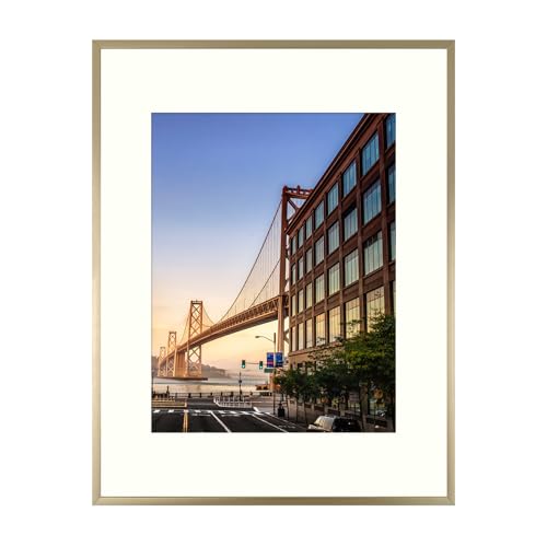 Golden State Art, 16 x 20 bildram guld aluminium (glänsande borstade) visningsbilder 11 x 14 med matta eller 16 x 20 utan matta väggmontering äkta glas metall fotoram