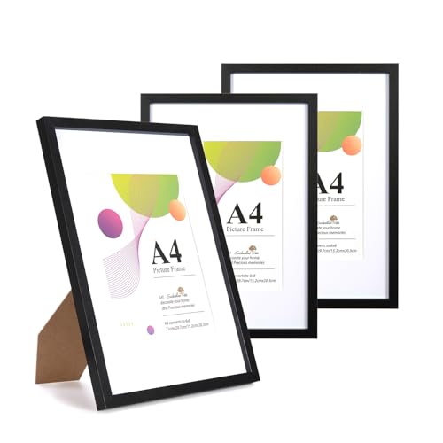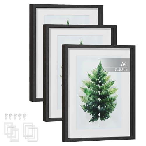 Cozary A4 ram, flera fotoramar för vägg, fotoram 21 × 29.7 set med 3, svart ram för vägg eller visning på bord, heminredning, sovrum, kontor