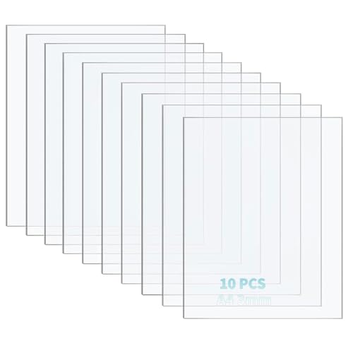 10 stycken plexiglasplattor 3 mm A4 akrylplatta 210 x 297 x 2,7 mm transparent plexiglasskiva plexiglas snitt enligt mått, akrylglasplatta, plastplatta 3 mm för fotoramar, projektutställning