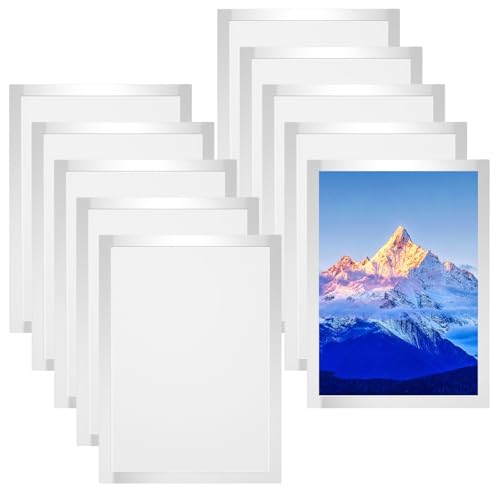 RLAVBL A4 fotoramar, set med 12, silvermagnetisk fotoram med självhäftande baksida för fönster, kakelvägg, kylskåp och dörr – perfekt för annonser, meddelanden, licenser, tryck och certifikat