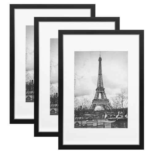 SONGMICS tavelram Set om 3, fotoramar för 28 x 36 cm, 20 x 25 cm, A4-foton, med matta, ramar, för vägg eller bord, fotogalleri, glas, MDF, 37 x 29,3 cm, svart ask RPF063B01