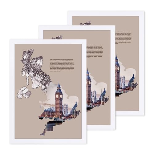 Lärdande träd A4 svart ram – 3-pack, vit bild 50 x 29,7 cm, A4-fotoramar med stativ bord eller vägghängning, träfoto med 6 x 8 montering