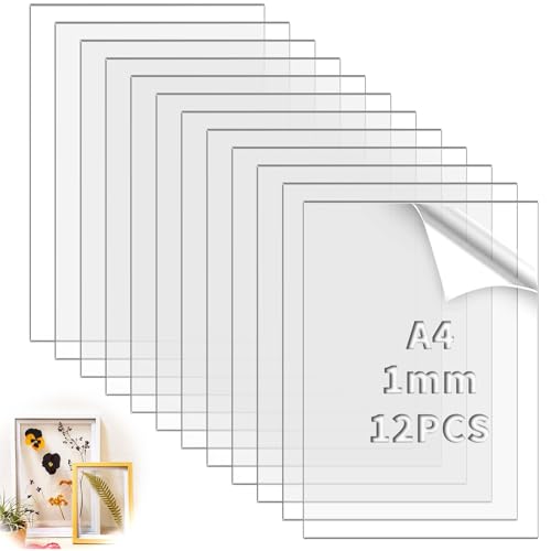 12 stycken akrylglasplattor transparent A4 1 mm akrylplatta för fotoramar målning projektutställning gör-det-själv-projekt bordsskyltar (29,7 x 21 cm)