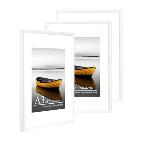 Baoee A3 vit bildram med A4-passepall, set om 3, fotoramar med akrylglas, A3-ram, affischram, certifikatram, väggmonterad