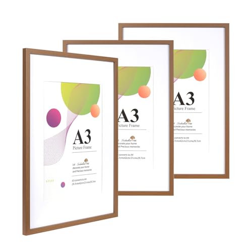Scholar Tree A3 brun ram – 3-pack A3-bildram, bruna bildramar 29,7 x 42 cm, A3 fotoramar med vägghängning, fotoramar i trä med A4-montering