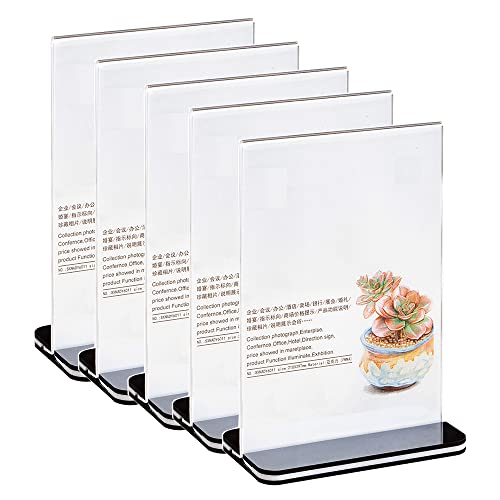 Aisamco 5 stycken akrylskylthållare T-format skrivbordsdisplaystativ, skylthållare, meny ad-ram. Lämplig för restauranger, fotoramar, evenemang, möten (A4)