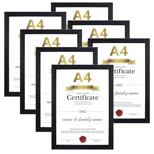 Giftgarden Svart A4 fotoram A4 fotoramar för skrivbord eller vägg visning av dokument, certifikat, affischer och konst, paket med 7