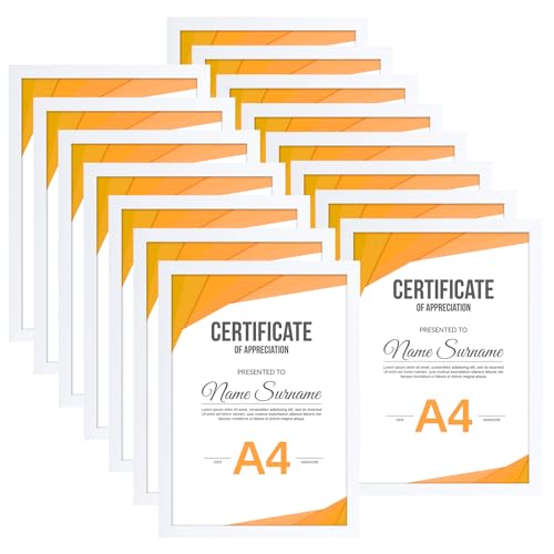 Giftgarden 12-pack fotoramar A4, vit färg, A4-storlek, certifikatram, vägg- och bordshängande