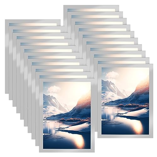 20 st magnetiska fotoramar i A4, självhäftande magnetisk bildram, magnetisk affischram, magnetisk A4-papper, visningsram för målningar, foton, meddelanden, certifikat, affisch (silver)