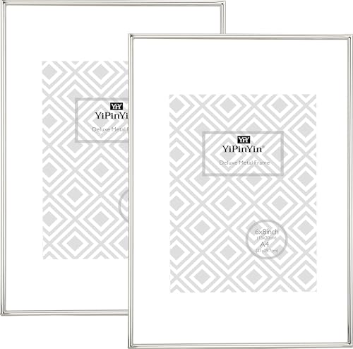 A4 (21 x 29,7 cm) silvermetallbildram med matta för 15 x 21 cm set med 2, smala silverpläterade fotoramar A4 med mjuk beröring sammetsbaksida för skrivbord och väggdekor